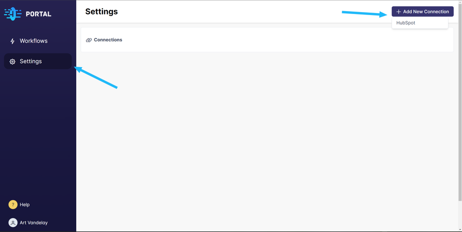 Go to the Settings page, click Add New Connection, and then select the platform you'd like to connect.