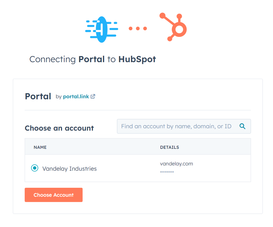 Connect to your HubSpot account, select the target workspace, and click Choose Account.